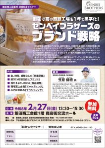 By 飯田商工会議所 投稿日: 2026年2月4日 カテゴリ: 202602272026-02-042026-02-04https://www.iidacci.or.jp/wp/wp-content/uploads/logo_iidacci.png飯田商工会議所https://www.iidacci.or.jp/wp/wp-content/uploads/logo_iidacci.png200px200px 関連情報「中馬ぬくもり街道ひな祭り」が始まります。【3月6日開催】飯田産業技術大学 水素利活用理解促進セミナーのご案内【2月27日開催】経営安定セミナーのご案内【2月20日開催】「訪日観光客おもてなしセミナー」のご案内