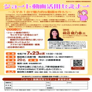 By 飯田商工会議所 投稿日: 2025年5月30日 カテゴリ: _05292025-05-302025-05-30https://www.iidacci.or.jp/wp/wp-content/uploads/logo_iidacci.png飯田商工会議所https://www.iidacci.or.jp/wp/wp-content/uploads/logo_iidacci.png200px200px 関連情報☆飯田グルメガイド”うまいいだ”新着情報 更新しました。☆飯田グルメガイド”うまいいだ”新着情報 更新しました。【2月27日開催】経営安定セミナーのご案内【2月20日開催】「訪日観光客おもてなしセミナー」のご案内